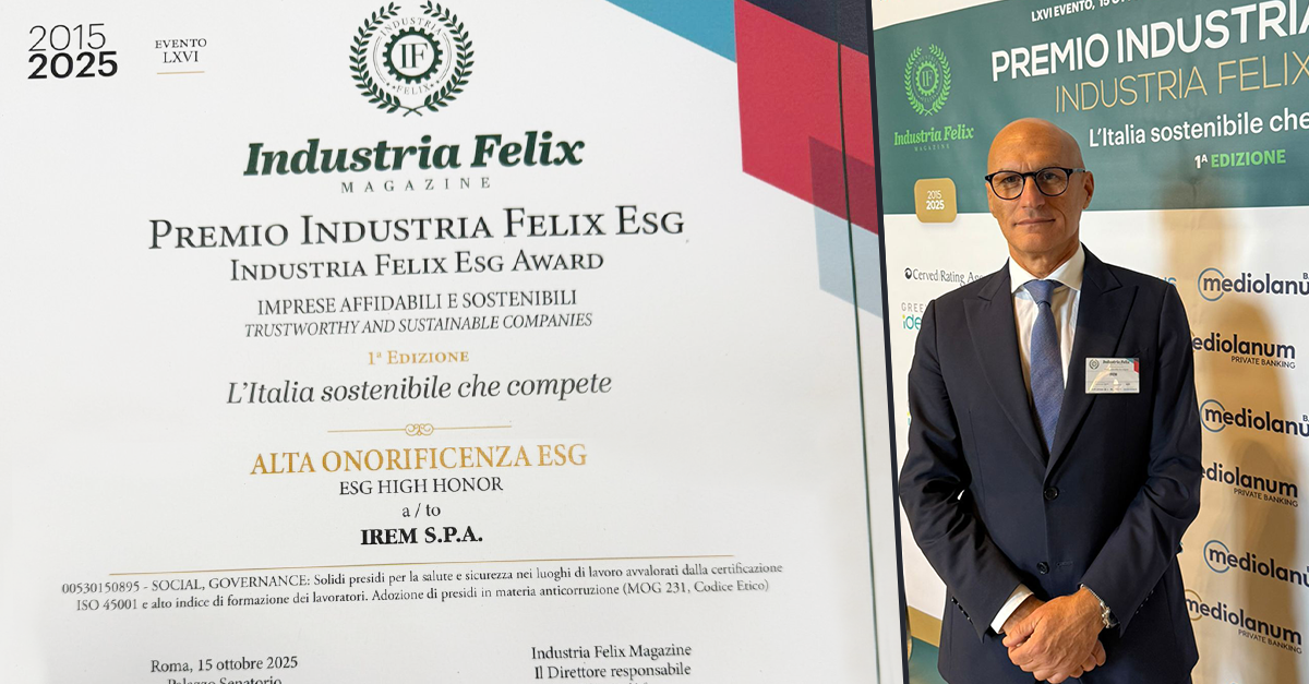 L’evento, promosso da Industria Felix Magazine – trimestrale di economia e finanza diretto da Michele Montemurro e supplemento de Il Sole 24 Ore – in collaborazione con Cerved Rating Agency, Cerved e A.C. Industria Felix, rappresenta uno dei riconoscimenti più autorevoli assegnati alle imprese italiane che si distinguono per affidabilità gestionale e impegno concreto verso la sostenibilità. A ritirare il premio è stato l’Amministratore Delegato di IREM, Giovanni Musso, che nel suo intervento ha sottolineato come l’azienda stia rafforzando il proprio percorso di transizione green e sociale a livello europeo.
